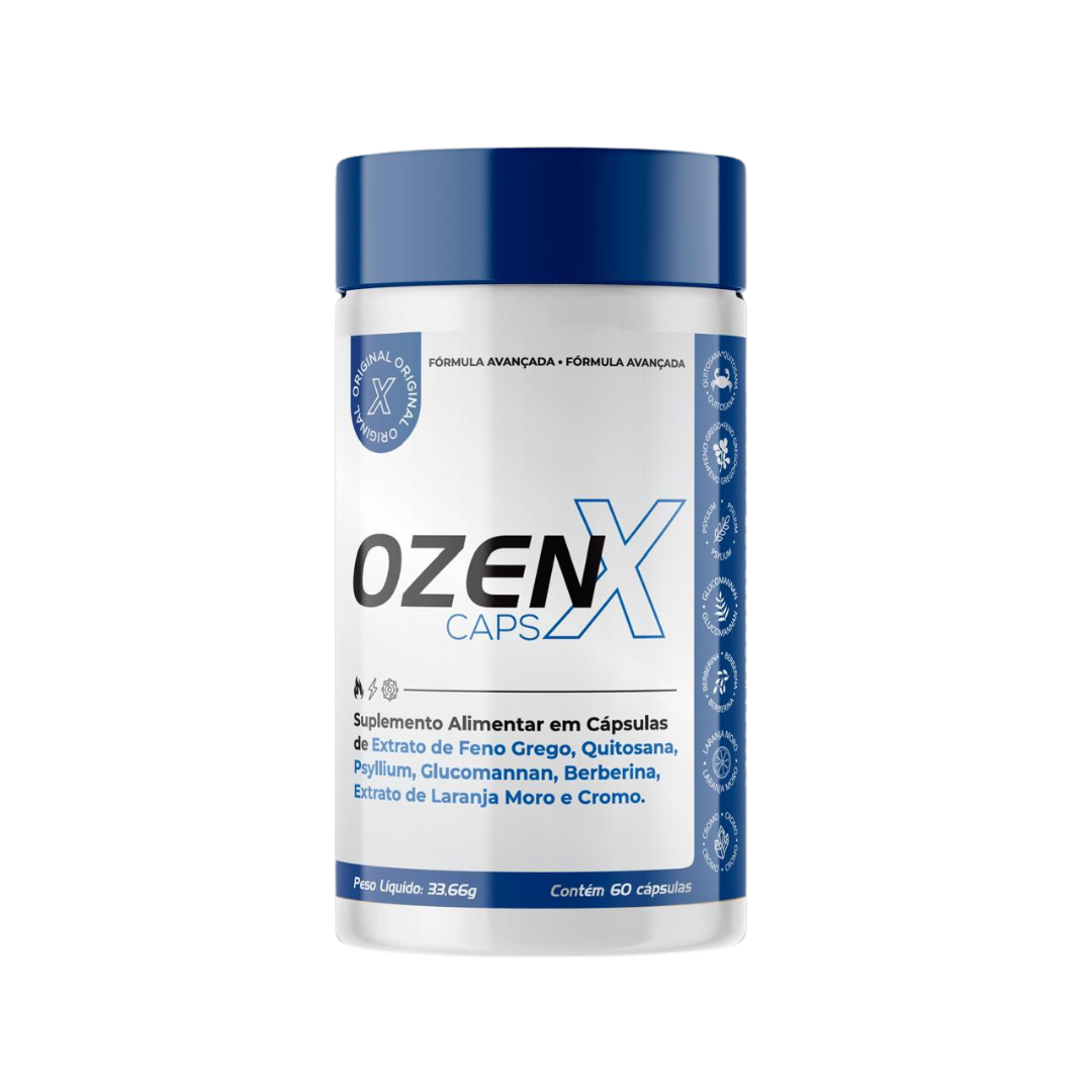 Ozen X é um suplemento alimentar que auxilia no emagrecimento e na melhora do metabolismo. Ele contém ingredientes como Glucomannan, Psyllium, Feno Grego, Berberina, Laranja Moro e Cromo, que são conhecidos por seus potenciais benefícios para a perda de peso e o controle do apetite.